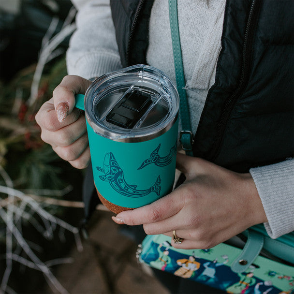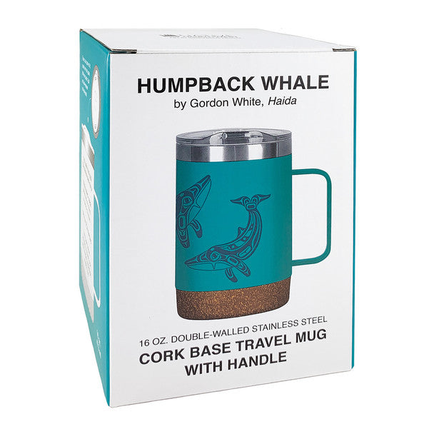Native Northwest Cork Base Travel Mug 16 oz, Humpback Whale