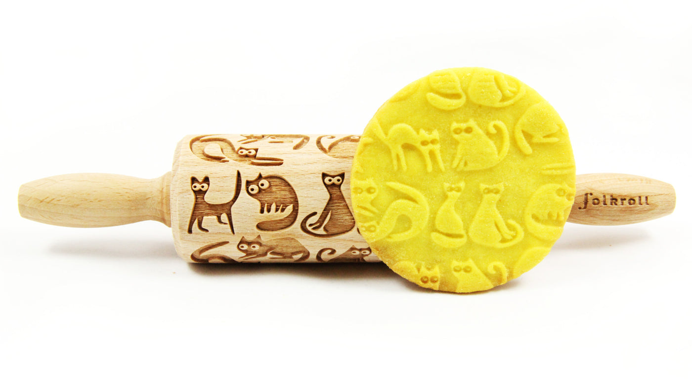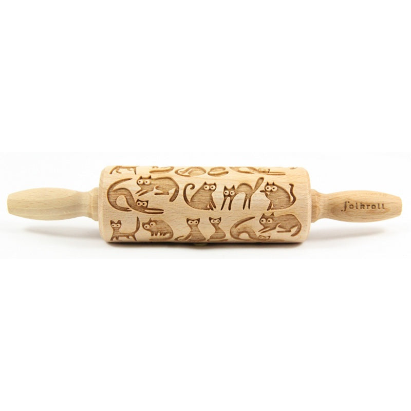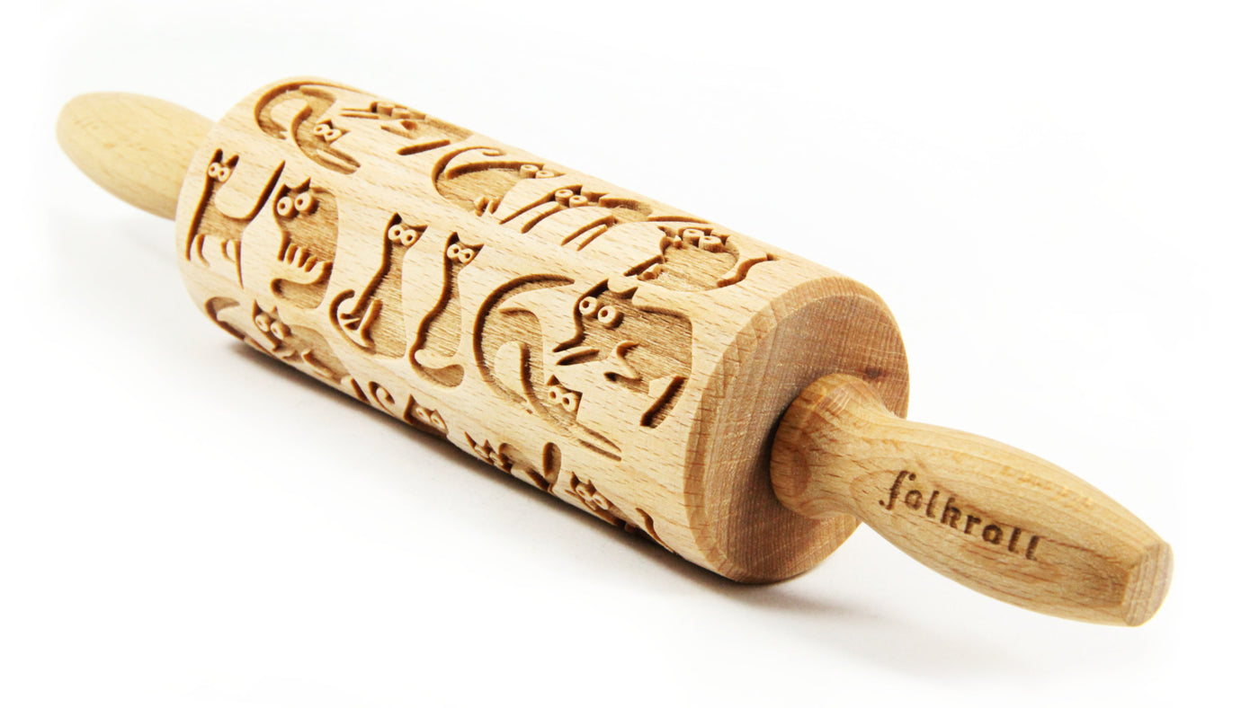 Folkroll Small Embossed Rolling Pin, Crazy Cat