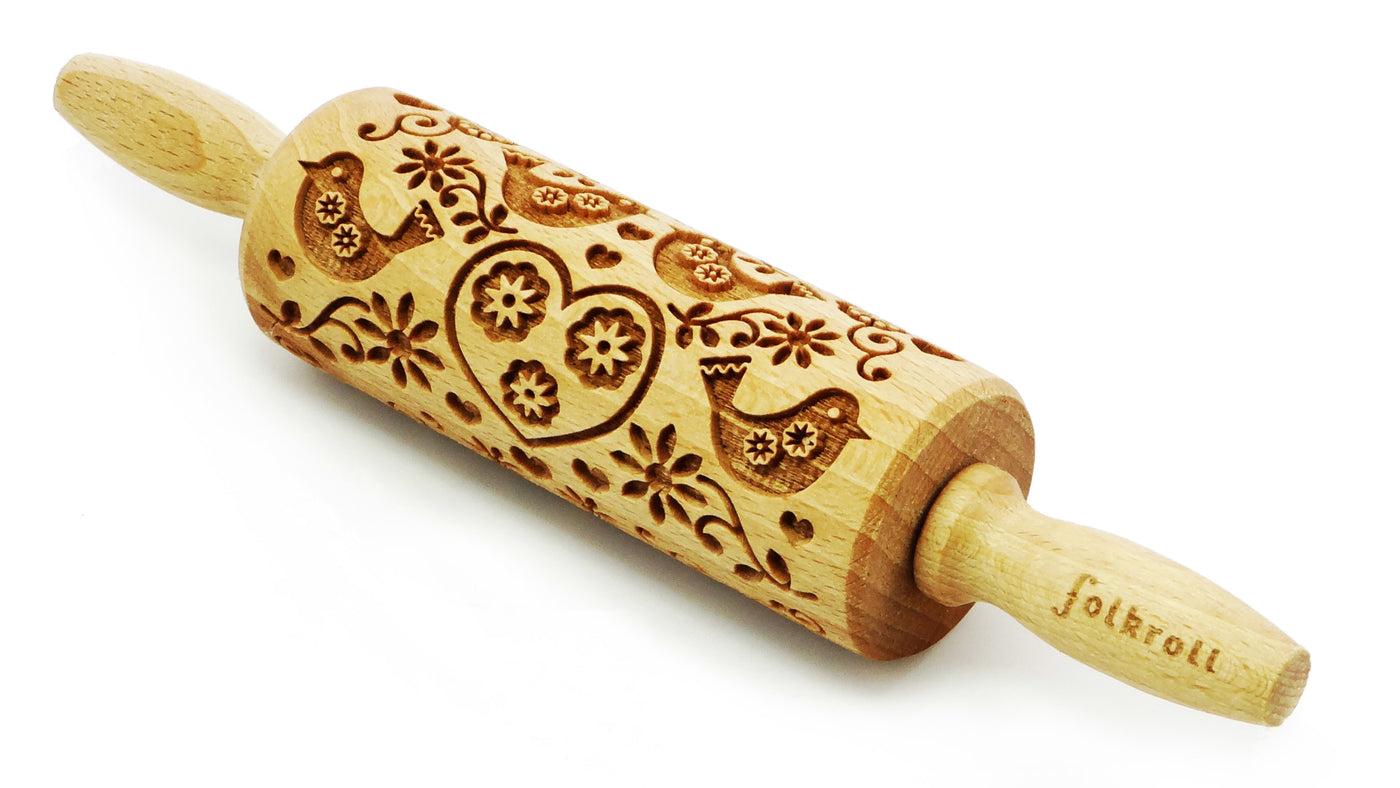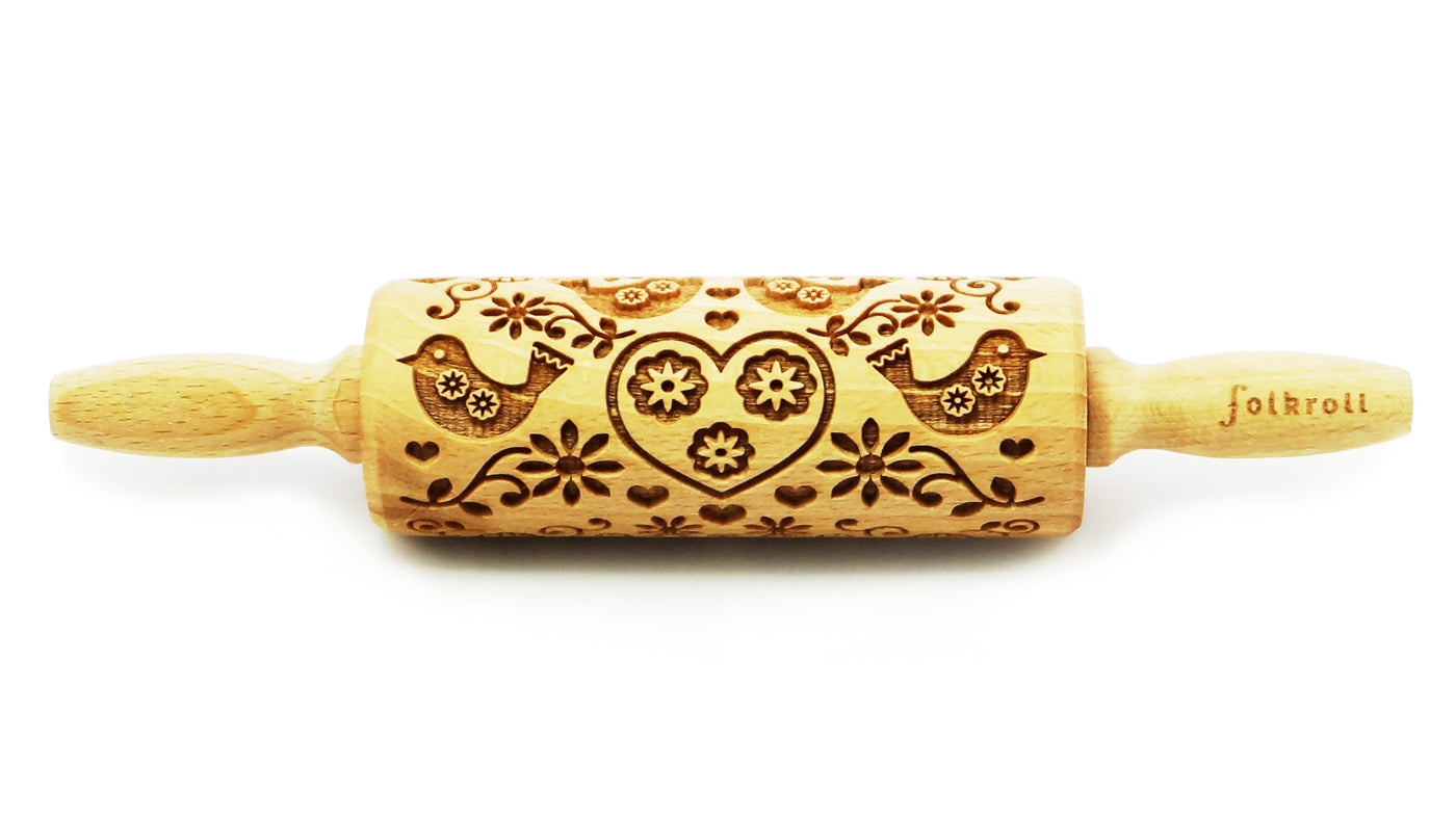 Folkroll Small Embossed Rolling Pin, Folk Doves